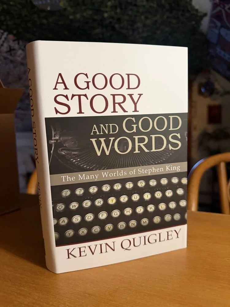 In publication limbo for fifteen years, finally A Good Story and Good Words is available to the public. The Signed Limited Edition hardcover, which features more than 600 pages and 200,000 words about the works of Stephen King, sold out of its print run immediately with no further printings planned. However, the author (me) has a very few additional copies for sale! $50 + shipping gets you Kevin Quigley’s long-awaited magnum opus!