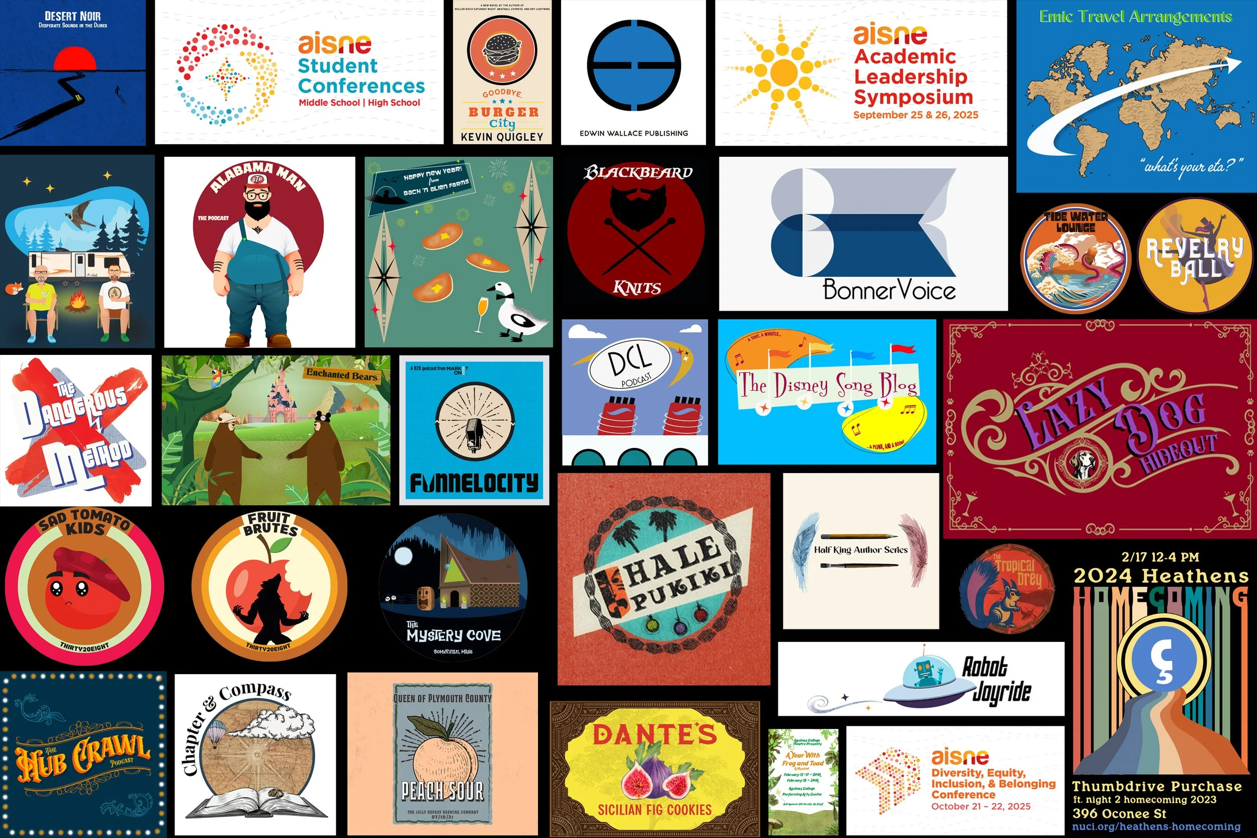 I’ve been working as a graphic designer for over a decade now, designing for corporations, groups, and regular people who want terrific design. Below is my whole portfolio, from logos to posters, signs to menus, podcast art to record covers and more, arranged by year.